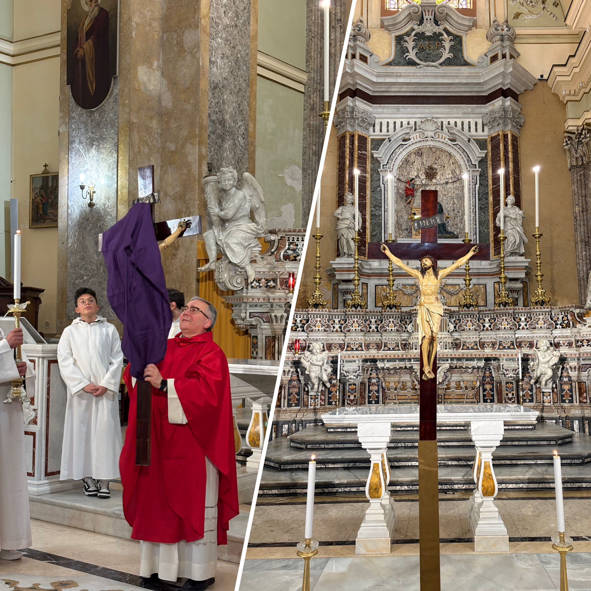 Ecco il legno della croce al quale fu appeso il Cristo Salvatore del mondo, venite adoriamo.
