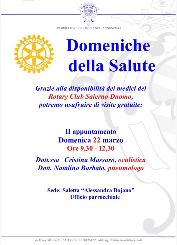 Grazie alla disponibilità dei medici del Rotary Club Salerno Duomo, potremo usufruire di visite gratuite:
