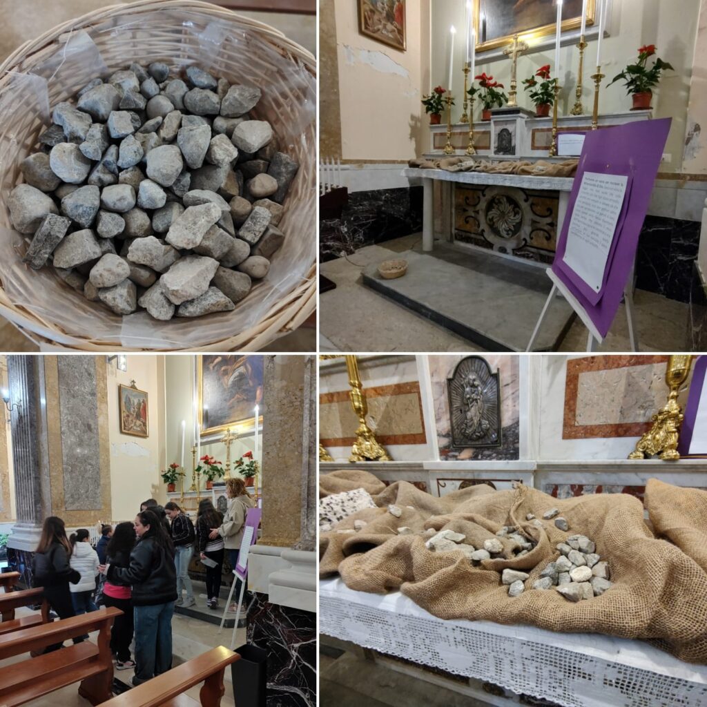 Portiamo un sasso per ricordare la Misericordia di Dio. Gesù non viola la legge, ma non vuole che vada smarrito ciò che Egli stava cercando, perché era venuto a salvare ciò che era perduto, non per gettare pietre ma per perdonare. Le parole di Gesù sono piene della forza disarmante della verità, che abbatte il muro dell’ipocrisia e apre le coscienze a una giustizia più grande, quella dell’amore, in cui consiste il pieno compimento di ogni precetto.